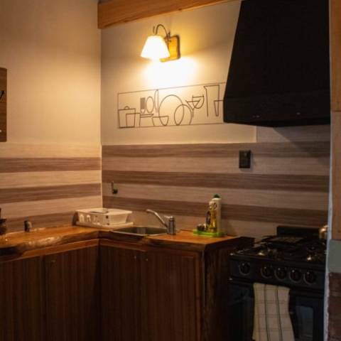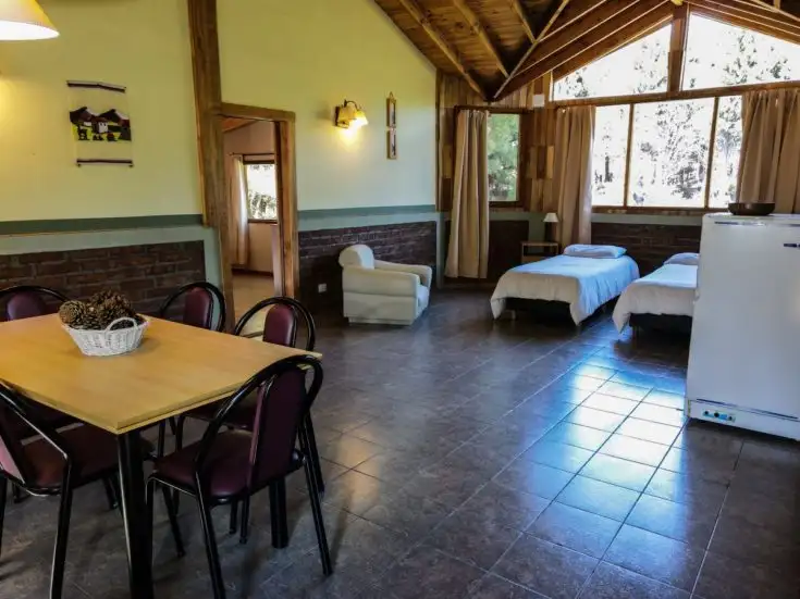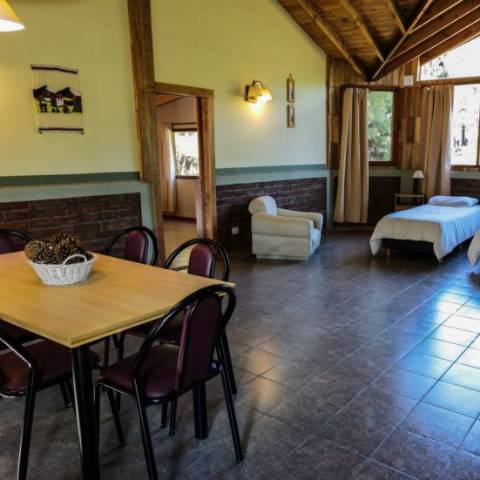 Contamos con 4 cabañas separadas del edificio principal, con vista al río Meliquina. 2 monoambientes, con 1 dormitorio y 2 dormitorios, equipadas con: